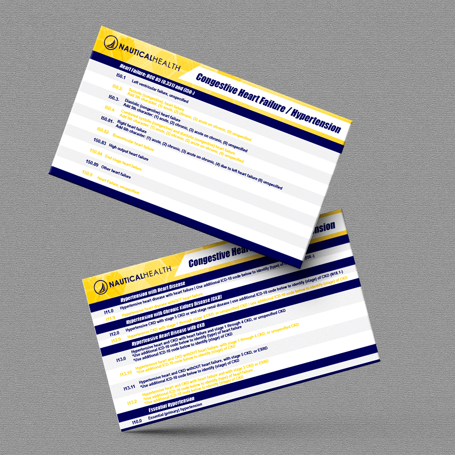 Medical coding cards created for Nautical Health. The objective of the project was to take coding material and apply it to the cards while maintaining a cohesive theme throughout every card. A project that was later presented to the CDC.