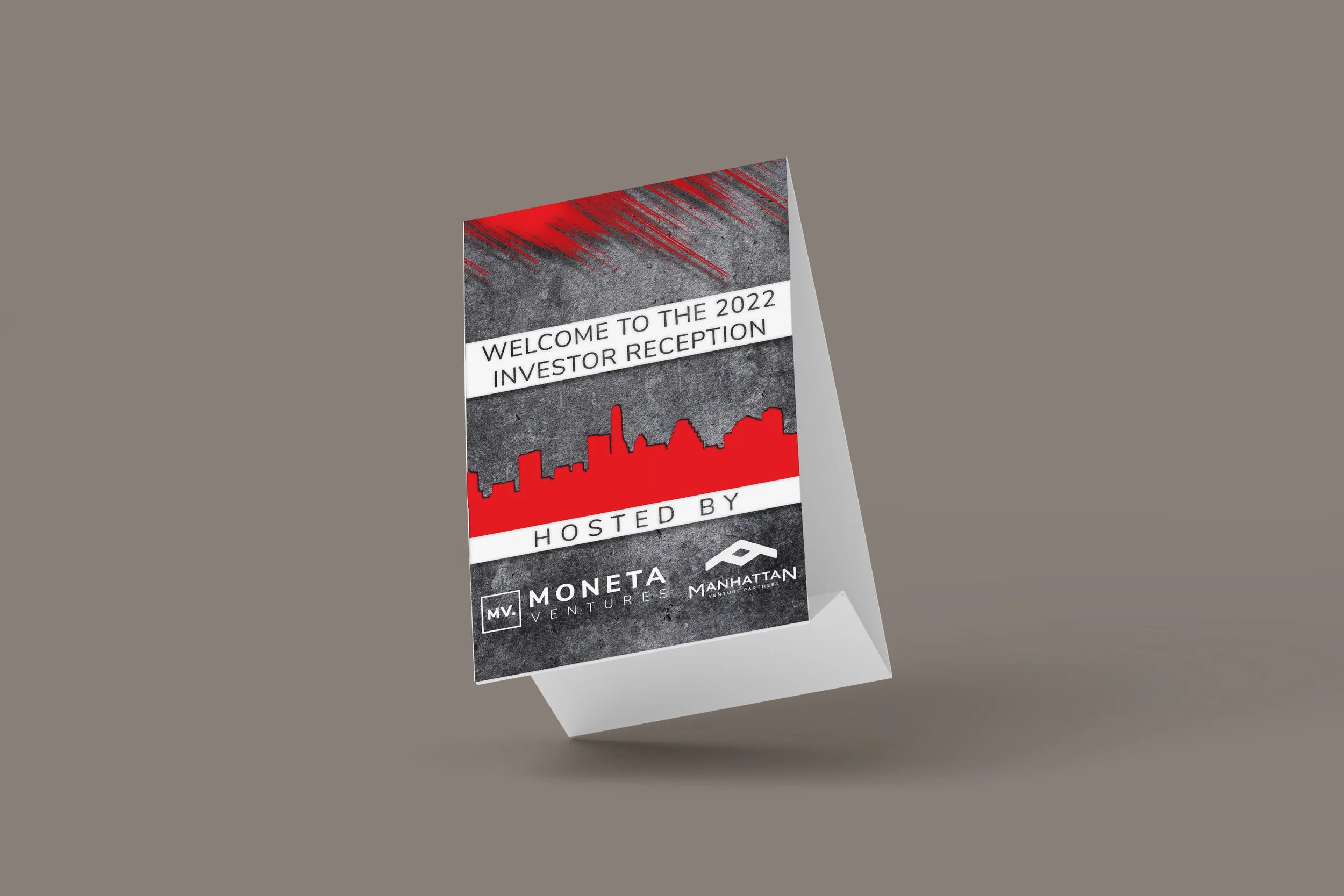 Moneta Ventures is a venture capital firm that hosted a private event during the South by Southwest (SXSW) conference. I designed a cohesive set of event materials to support the experience and reflect the brand’s modern, sophisticated identity.